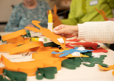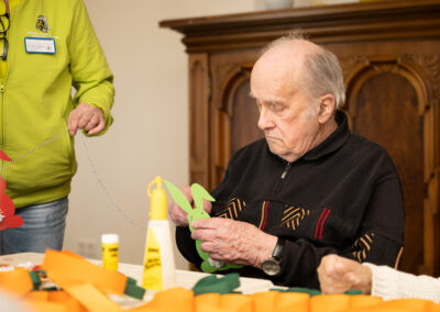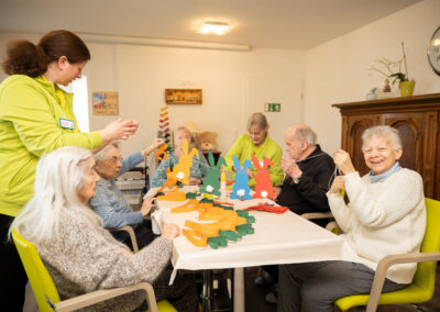 Des weiteren bieten wir erholsame und entspannende Freizeitbeschäftigungen wie Handarbeiten, gemeinsames Basteln, Singen, Spielen, Seniorentanz, Buchvorlesungen und vieles mehr.